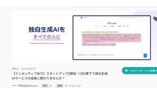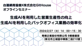 NEWS生成AI活用セミナー、台湾企業向けに開催 – 日台ビジネスの新たな可能性を探る (※下記中国語記事あり)弊社、株式会社GitHouseは2024年2月27日(火)に台湾にて、生成AIの企業利用に関するセミナーを開催致しました。このセミナーは台湾の企業を対象に、台湾網商協會との共同主催で行われました。当社のCEO、助飛羅... 2024.02.29NEWS