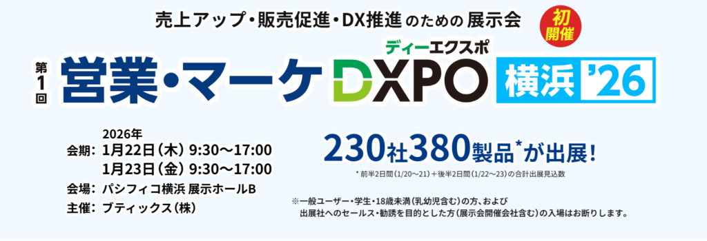 - 展示会名:営業・マーケDXPO 横浜2026